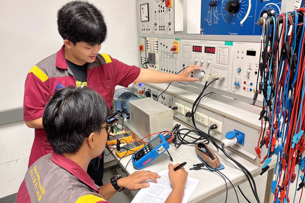 นักศึกษาฝึกปฏิบัติกับชุดทดลอง Electrical Machines