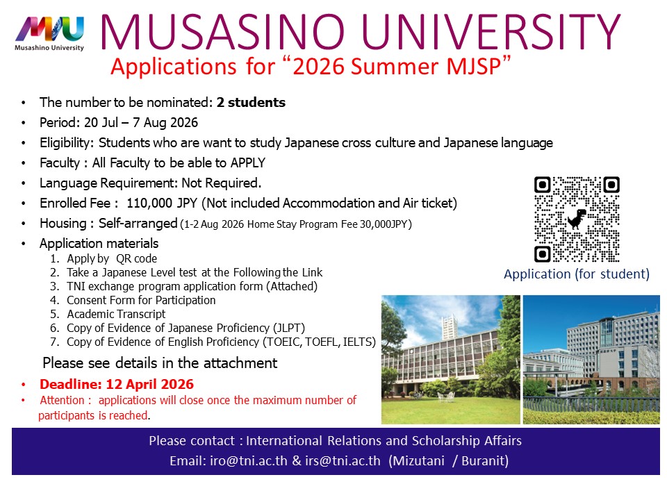 プログラム名:2026年度武蔵野大学夏季日本研修募集期間:2026/02/13〜2026/03/31募集URL(学生用)Application Guide for Students:
