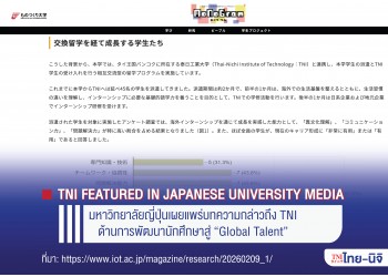 มหาวิทยาลัยญี่ปุ่นเผยแพร่บทความกล่าวถึง TNI ด้านการพัฒนานักศึกษาสู่ “Global Talent”