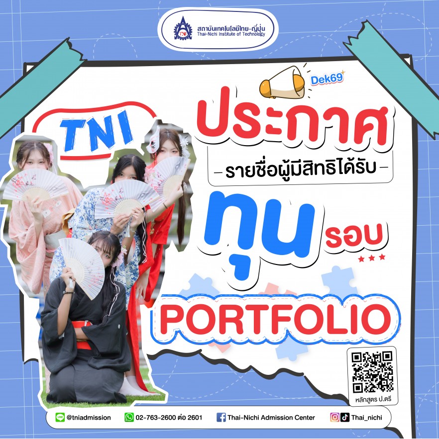 ประกาศรายชื่อผู้ได้รับทุนการศึกษา ประเภท Portfolio
