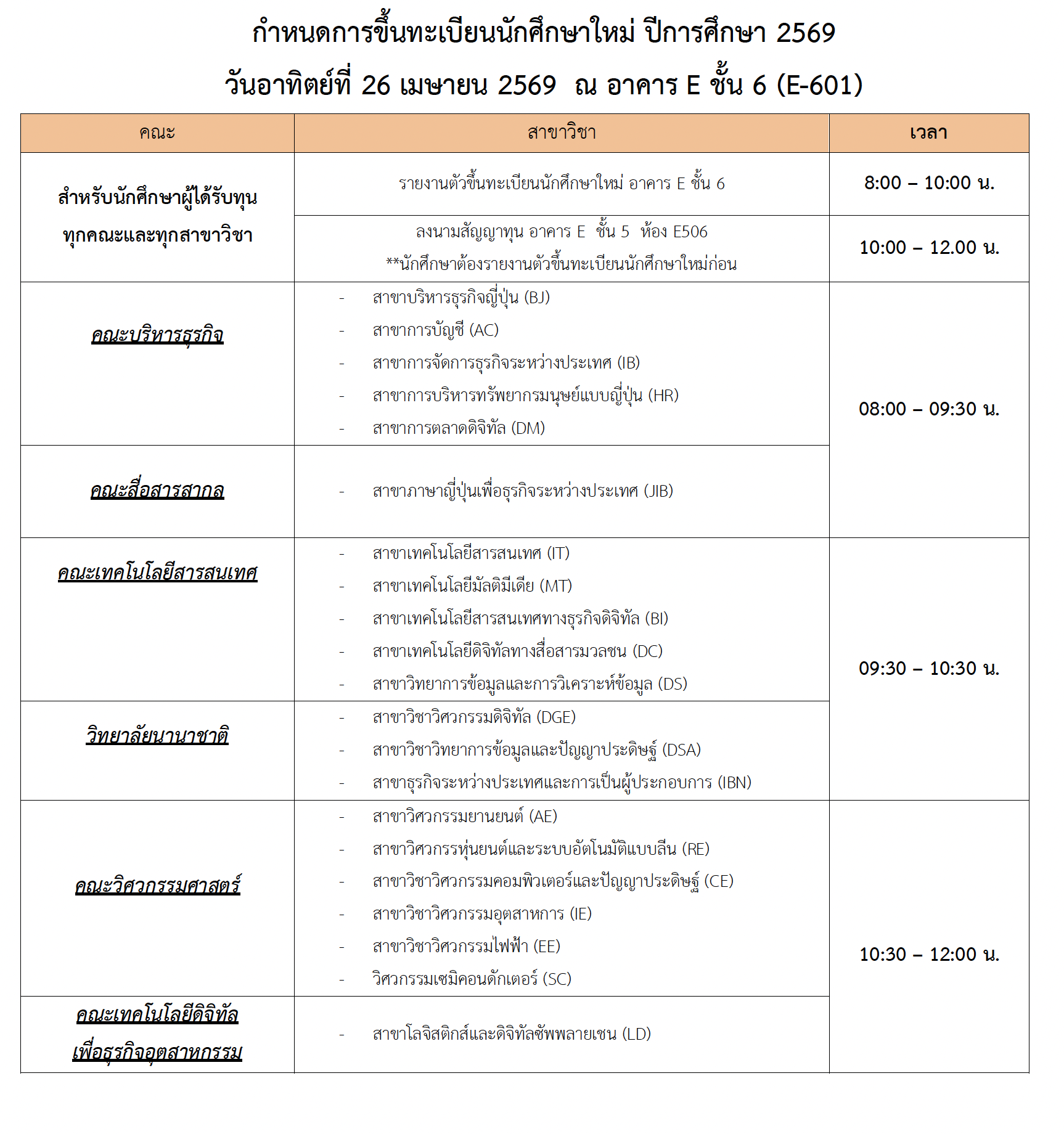 เรื่อง ประกาศรายชื่อผู้ได้รับทุนการศึกษาระดับปริญญาตรี