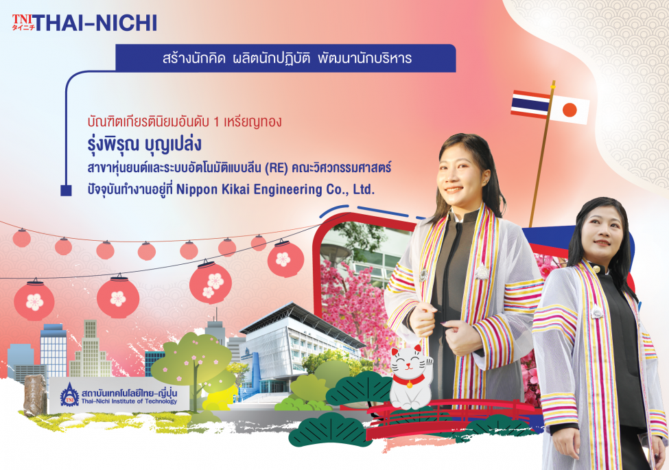 บอกเล่าประสบการณ์จากบัณฑิตเกียรตินิยมอันดับ 1 เหรียญทอง สู่การทำงานในสายเทคโนโลยีญี่ปุ่นอย่างมืออาชีพ นางสาวรุ่งพิรุณ บุญเปล่ง สาขาหุ่นยนต์และระบบอัตโนมัติแบบลีน (RE) คณะวิศวกรรมศาสตร์ ปัจจุบันทำงานอยู่ที่ Nippon Kikai Engineering Co., Ltd.