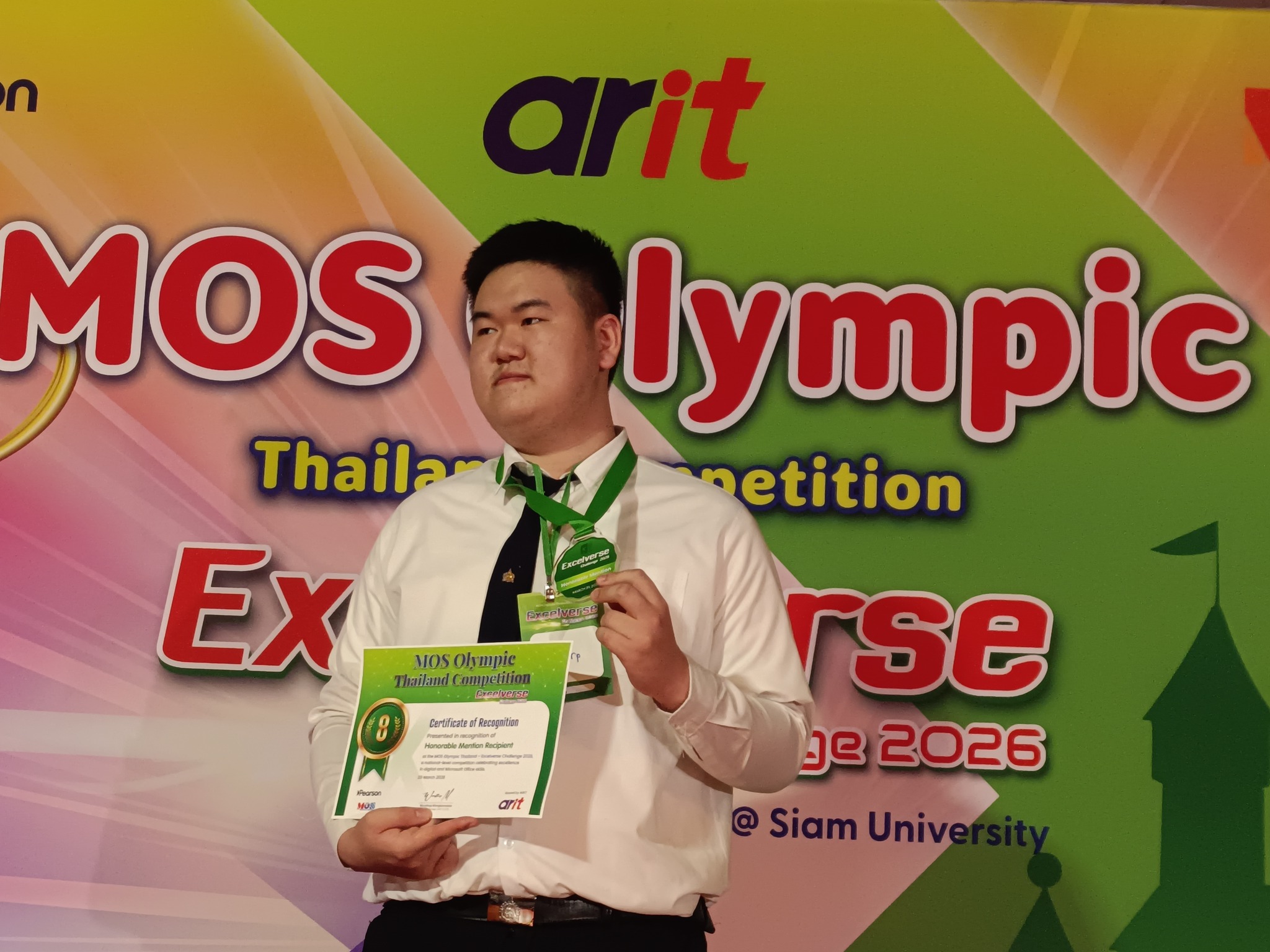 ขอแสดงความยินดีกับนักศึกษาคณะวิศวกรรมศาสตร์ สถาบันเทคโนโลยีไทย-ญี่ปุ่น สาขาวิศวกรรมคอมพิวเตอร์และปัญญาประดิษฐ์ (CE) ในการแข่งขันในรายการ MOS Olympic Excelverse Challenge 2026 โดยนักศึกษาสาขาวิศวกรรมคอมพิวเตอร์และปัญญาประดิษฐ์ (CE) สามารถสอบแข่งขันได้ในลำดับที่ 8 ซึ่งงานจัดขึ้นเมื่อวันที่ 27-29 มีนาคม 2569 เวลา 08.00-17.30 น. ณ มหาวิทยาลัยสยาม