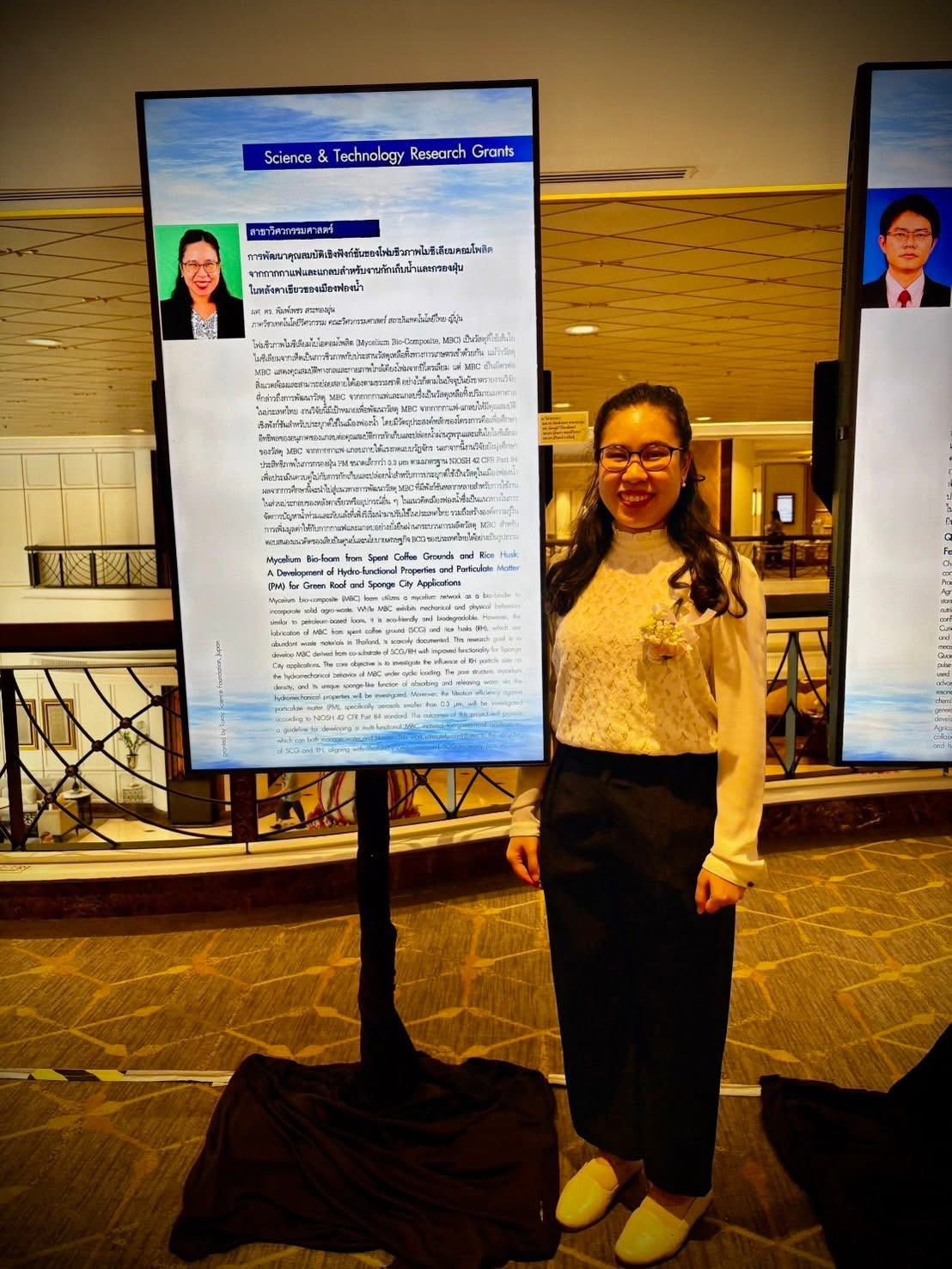 ขอแสดงความยินดีกับ อ.พิมพ์เพชร สระทองอุ่น และทีมวิจัยจากห้องแลป Composite Materials Lab at TNI ที่ได้รับทุนวิจัยจาก Thailand Toray Science Foundation (TTSF) โดยมีผลงานวิจัยเรื่อง การพัฒนาคุณสมบัติเชิงฟังก์ชันของโฟมชีวภาพไมซีเลียมคอมโพลิตจากกากกาแฟและแกลบสำหรับงานกักเก็บน้ำและกรองฝุ่นในหลังคาเขียวของเมืองฟองน้ำ (Mycelium Bio-foam from Spent Coffee Grounds and Rice Husk A Devolopment of Hydro-functional Properties and Particulate Matter (PM) for Green Roof and Sponge Gly Applications)