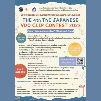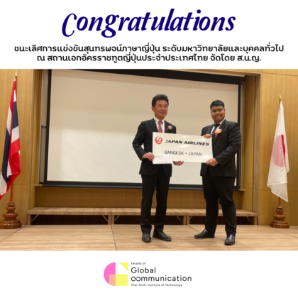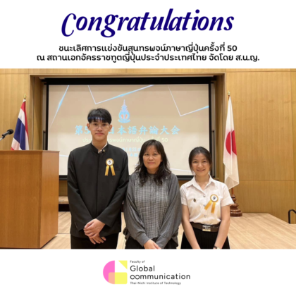 ข่าวประชาสัมพันธ์สำนักฯ 19 Jan / 0 / Admin S นักศึกษา TNI คว้ารางวัลชนะเลิศและอันดับ 4 ในการประกวดสุนทรพจน์ภาษาญี่ปุ่นระดับประเทศ