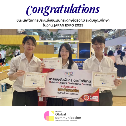 ข่าวประชาสัมพันธ์สำนักฯ 13 Feb / 0 / Admin S แสดงความยินดีและภูมิใจให้นักศึกษาชั้นปีที่ 1 คว้ารางวัลชนะเลิศแข่งขันโอริกามิ