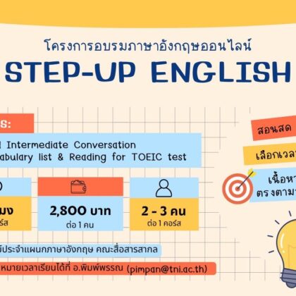 คอร์สบริการวิชาการ 18 Feb / 0 / Admin S 📢 เปิดรับสมัครแล้ว! โครงการอบรมภาษาอังกฤษออนไลน์ Step-Up English 🧑🏫✨