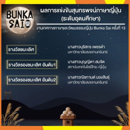 ผลการแข่งขันร้องเพลงและสุนทรพจน์ภาษาญี่ปุ่น งานเทศกาลภาษาและวัฒนธรรมญี่ปุ่น Bunka Sai ครั้งที่ 13