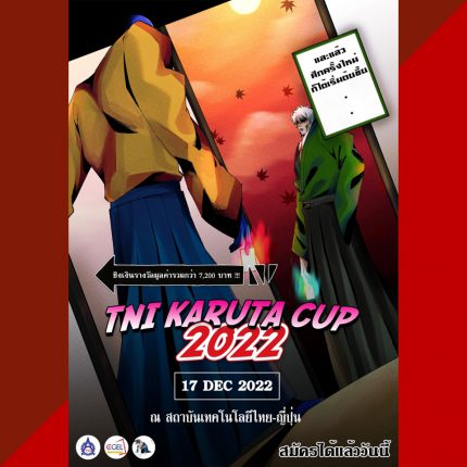 วันเสาร์ที่ 17 ธันวาคม 2565 ที่ผ่านมา ชมรมคารุตะทีเอ็นไอ (Karuta Club TNI) ได้จัดงานแข่งขัน “TNI KARUTA CUP 2022” ขึ้น ณ สถาบันเทคโนโลยไทย-ญี่ปุ่น แม้ว่าจะอยู่ในสถานการณ์โควิด-19 แต่งานนี้ก็มีน้อง ๆ จากหลากหลายสถาบันให้ความสนใจสมัครเข้ามาร่วมแข่งขัน บรรยากาศภายในงานจึงครื้นเครงสนุกสนานเลยทีเดียว นอกจากการแข่งขันแบบกลุ่มในช่วงเช้าแล้ว ช่วงบ่ายยังมีการแข่งขันแบบเดี่ยวของระดับผู้มีประสบการณ์อีกด้วย ซึ่งในช่วงบ่ายนี้ แต่ละคนได้แสดงฝีมือกันอย่างเต็มที่ สุดความสามารถ ทางชมรมคารุตะทีเอ็นไอขอขอบคุณผู้เข้าแข่งขันทุกคนที่ให้ความสนใจงานแข่งขันกีฬาคารุตะในครั้งนี้ รวมถึงสปอนเซอร์ทุกท่านและทาง ชมรมคารุตะกรุงเทพ クルンテープかるた会 ที่คอยช่วยสนับสนุนทำให้เกิดงานแข่งขันครั้งนี้ขึ้นตลอดจนช่วยให้งานสำเร็จลุล่วงไปได้ด้วยดี หลังจากจบงานแล้ว หวังว่าน้อง ๆทุกคนจะชื่นชอบไพ่คารุตะและสนใจวัฒนธรรมญี่ปุ่นมากยิ่งขึ้นรวมทั้งได้รับประสบการณ์ดีๆจากการแข่งขันในครั้งนี้ สามารถรับชมภาพบรรยากาศในงานได้ผ่าน Facebook Fanpage: Karuta Club TNI ชมรมคารุตะทีเอ็นไอ 泰日工業大学かるた部