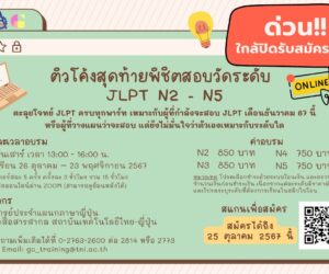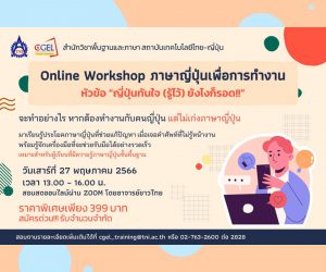 Academic Service Courses (คอร์สบริการวิชาการ) 📢 เปิดรับสมัครแล้ว! โครงการอบรมภาษาอังกฤษออนไลน์ Step-Up English 🧑🏫&…February 18, 2025 “ตะลุยโจทย์พิชิต A-Level 82 ภาษาอังกฤษ”February 7, 2025 “ติวศัพท์และไวยากรณ์ N1” ฟรี!!!!October 31, 2024 ติวโค้งสุดท้ายพิชิตสอบวัดระดับ JLPT N2 – N5October 24, 2024 สัมมนาออนไลน์ฟรี “เม้าท์มอยเรื่องมูๆ สไตล์ญี่ปุ่น”October 16, 2024 แนะนำโรงเรียนสอนญี่ปุ่น ABK CollegeAugust 8, 2024 คอร์สภาษาญี่ปุ่นเบื้องต้นJuly 10, 2024 สัมมนาออนไลน์ หัวข้อ การสื่อสารข้ามวัฒนธรรมในที่ทำงานMay 8, 2024 อบรมออนไลน์หัวข้อ “ตะลุยโจทย์พิชิต A-Level 82 ภาษาอังกฤษ” เสาร์ที่ 17 กุมภาพันธ์ 2567February 9, 2024 Online Workshop ภาษาญี่ปุ่นเพื่อการทำงาน หัวข้อ “ญี่ปุ่นทันใจ (รู้ไว้) ยังไงก็รอด!!”June 14, 2023
