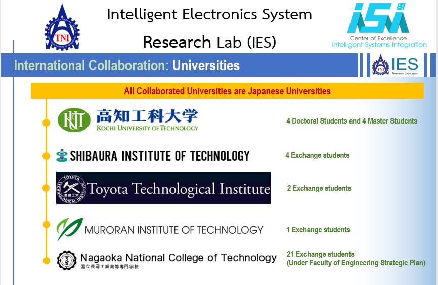 | การประชุมวิชาการระดับนานาชาติ เช่น TSME-ICoME, JCREN, TNIAC, ICBIR, ICAITI (IEEE), ProMAC 2018 (IPMA Japan) เป็นต้น |