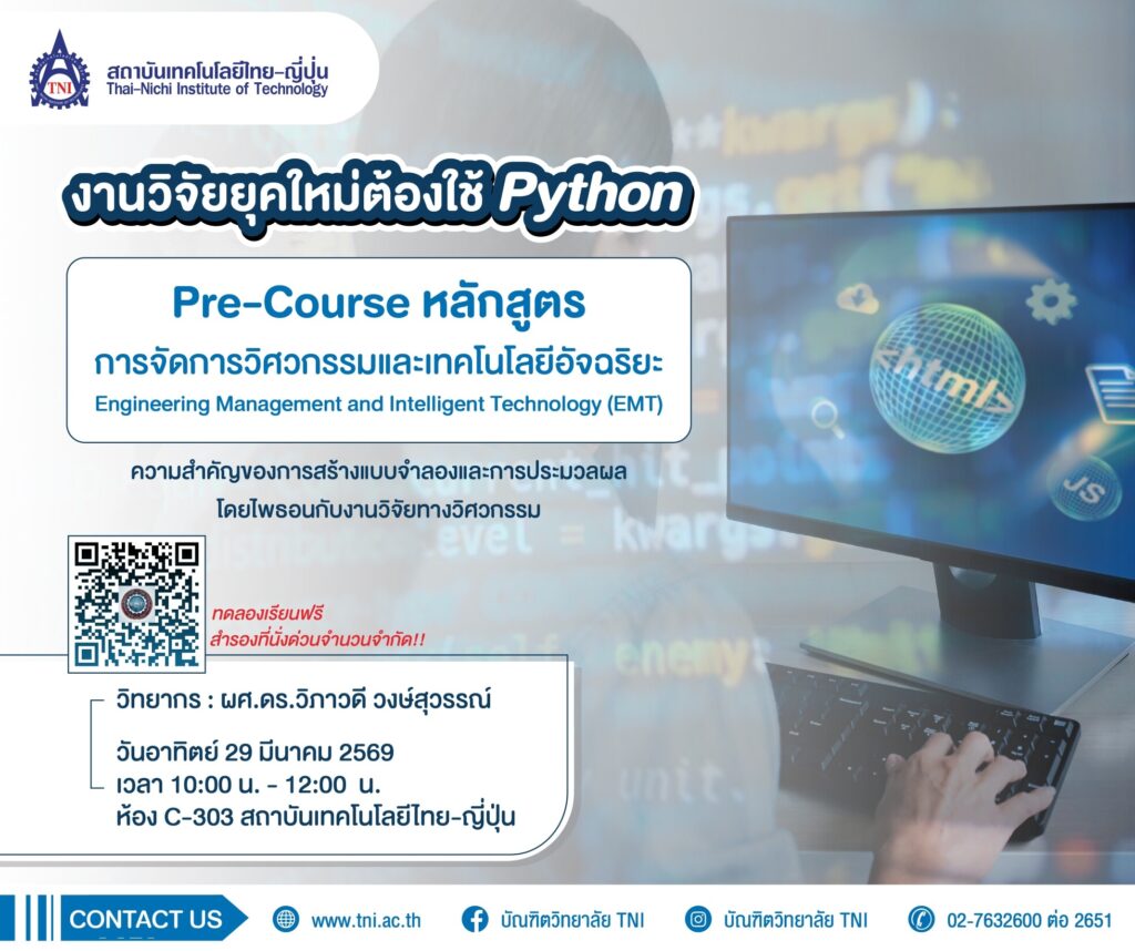 ฟรี ! สำหรับผู้ที่สนใจเรียนต่อ ป.โท EMT (Engineering Management and Intelligent Technology)