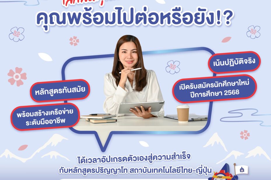 สถาบันเทคโนโลยีไทย – ญี่ปุ่น เปิดรับสมัครปริญญาโทสไตล์ญี่ปุ่น แห่งเดียวในประเทศไทย มีทุนการวิจัยและลุ้นโอกาสไปดูงานที่ญี่ปุ่นด้วย ข่าวดี….ใครกำลังต้องการอยากเรียนต่อ เพิ่มโอกาสในการเติบโตในสายอาชีพ อัปสกิลเพิ่ม ปรับฐานเงินเดือน สมัครเรียนป.โท ที่ TNI แถมยังได้ภาษาด้วย เงื่อนไขการรับสมัคร ไม่จำกัดเกรดเฉลี่ย สอบสัมภาษณ์ อย่างเดียว! มีทุนการวิจัย โอกาสไปโครงการแลกเปลี่ยน หรือดูงานที่ประเทศญี่ปุ่น ปริญญาโท https://www.tni.ac.th/grad_programme/ อย่ารอช้า! สมัครเลย… Read More »รับสมัคร ป.โท 1/2568
