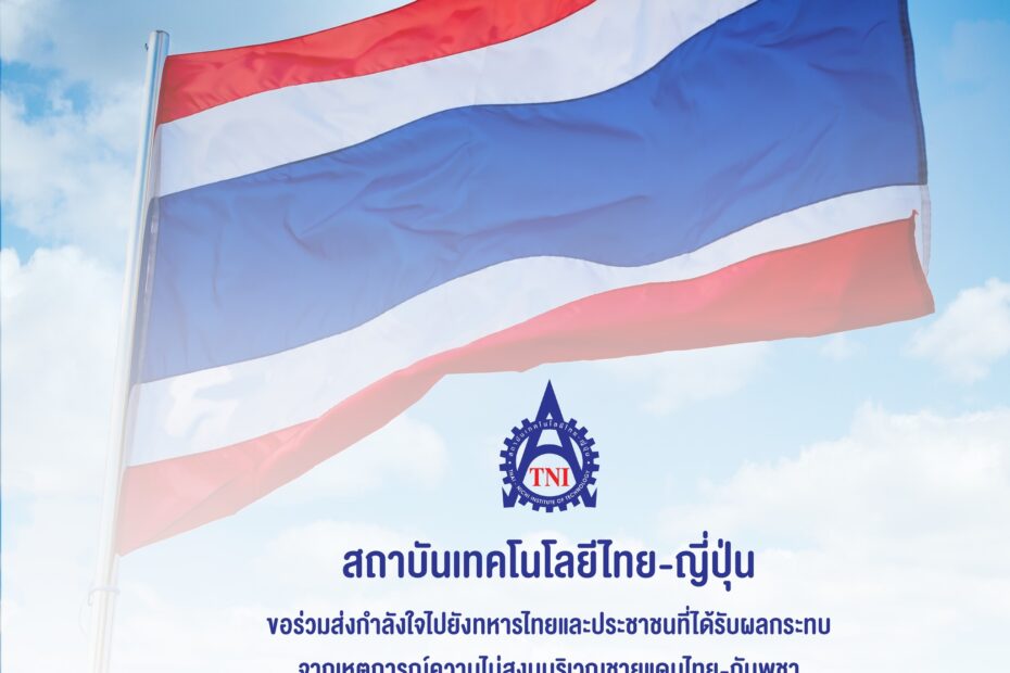 สถาบันเทคโนโลยีไทย-ญี่ปุ่น ขอร่วมส่งกำลังใจไปยังทหารไทยและประชาชนที่ได้รับผลกระทบจากเหตุการณ์ความไม่สงบบริเวณชายแดนไทย-กัมพูชา และขอแสดงความเสียใจอย่างสุดซึ้งต่อการสูญเสีย ขอให้ทุกท่านปลอดภัย และขอให้สถานการณ์คลี่คลายกลับสู่ความสงบโดยเร็ว