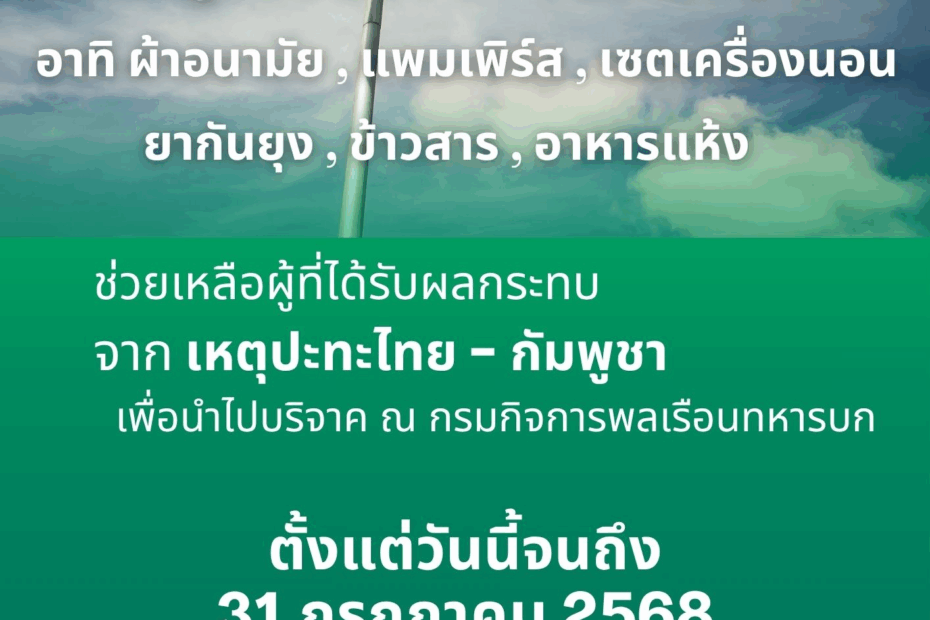 ขอเชิญร่วมบริจาคสิ่งของเพื่อช่วยเหลือผู้ได้รับผลกระทบจากเหตุการณ์ปะทะบริเวณชายแดนไทย – กัมพูชา ———————————————————————– ด้วยสถานการณ์ความไม่สงบที่เกิดขึ้น ส่งผลกระทบต่อประชาชนในพื้นที่ชายแดน จากเหตุการณ์ปะทะไทย – กัมพูชา ฝ่ายกิจการนักศึกษา และ สโมสรนักศึกษา สถาบันเทคโนโลยีไทยญี่ปุ่น ขอเชิญ ผู้บริหาร คณาจารย์ และบุคลากร ทุกท่าน ร่วมบริจาคสิ่งของที่จำเป็น เพื่อส่งต่อความช่วยเหลือไปยังผู้ได้รับผลกระทบ ผ่าน กรมกิจการพลเรือนทหารบก สิ่งของที่สามารถบริจาคได้ อาทิ: ของใช้จำเป็นในชีวิตประจำวัน… Read More »ขอเชิญร่วมบริจาคสิ่งของเพื่อช่วยเหลือผู้ได้รับผลกระทบจากเหตุการณ์ปะทะบริเวณชายแดนไทย – กัมพูชา