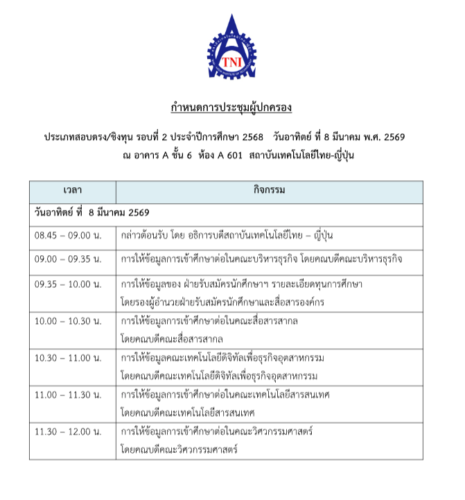 กำหนดการประชุมผู้ปกครองในวันที่ 8 มี.ค. 2569