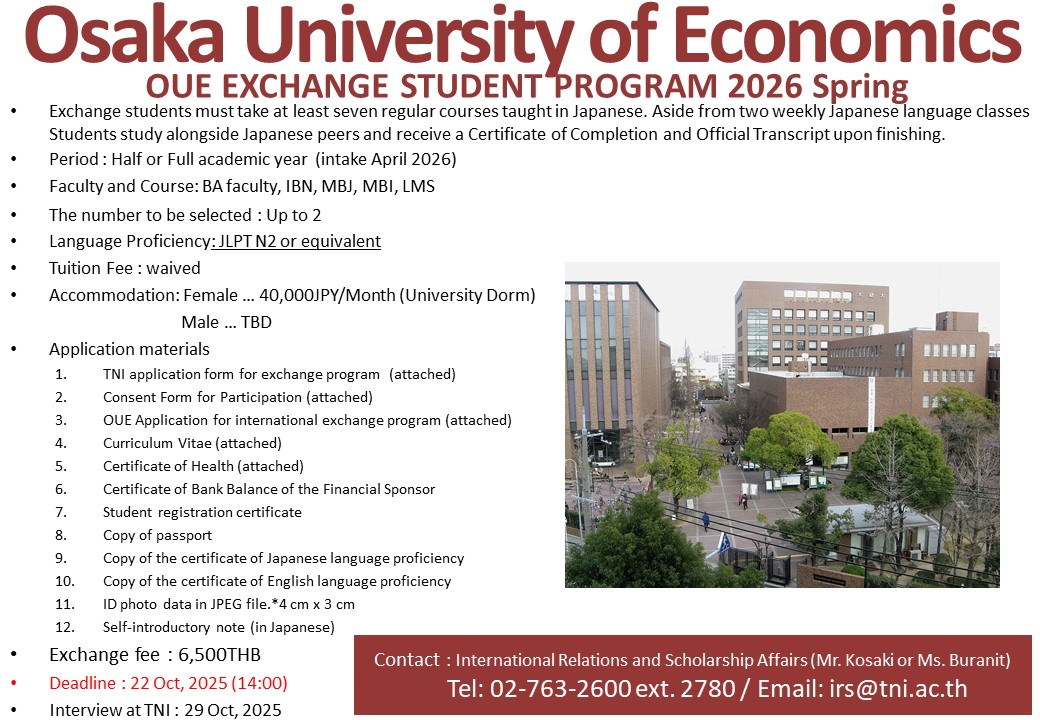 Osaka University of Economics OUE EXCHANGE STUDENT PROGRAM 2026 Spring