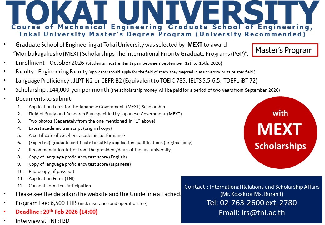 [MEXT Scholarship][Master's Program][Enginnering]TOKAI UNIVERSITY Course of Mechanical Engineering Graduate School of Engineering, Tokai University Master’s Degree Program