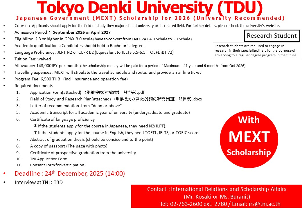 【Documents to Submit】... Submit to irs@tni.ac.th by December 24, 2025