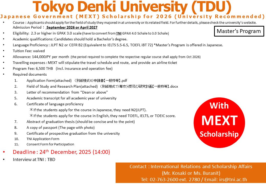 Tokyo Denki University MEXT Program 2026 Autumn Intake