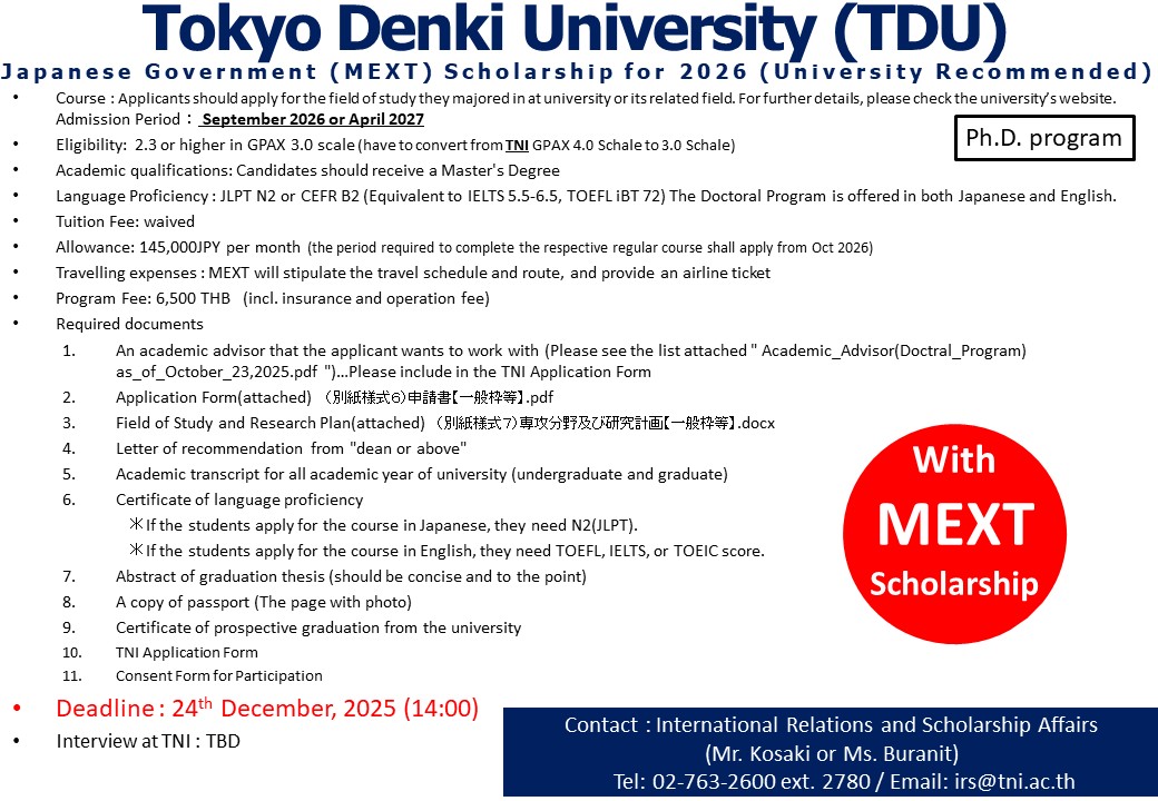 【Documents to Submit】... Submit to irs@tni.ac.th by December 24, 2025