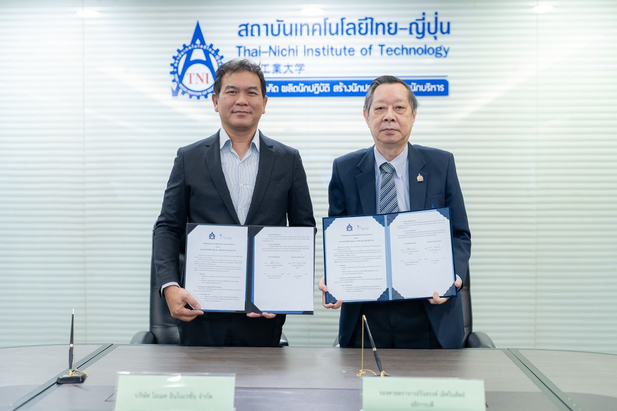 เมื่อวันที่ 6 มิถุนายน 2567 รศ.รังสรรค์ เลิศในสัตย์ อธิการบดี สถาบันเทคโนโลยีไทย-ญี่ปุ่น พร้อมด้วย รศ.อัญชลี สุพิทักษ์ คณบดี และคณาจารย์ คณะวิศวกรรมศาสตร์ ลงนามความร่วมมือทางวิชาการ (MOU) กับ ดร.ปัญญาพล สุพรรณวงศ์ กรรมการผู้จัดการ บริษัทเอส.เอ็ม.ซี. (ประเทศไทย), คุณมานิตย์ จันสุทธิรางกูร ประธานกรรมการ บริษัท ไอเมค อินโนเวชั่น จำกัด และคุณกิตติคุณ เกษตรเวทิน กรรมการผู้จัดการ บริษัท มาเดสโก้ อินเทลลิเจนท์ จำกัด โดยมีวัตถุประสงค์เพื่อเสริมสร้างความร่วมมือทางด้านวิชาการ ด้านการวิจัย เทคโนโลยี รวมไปถึงการส่งเสริมและพัฒนาหลักสูตรการเรียนการสอนด้านวิศวกรรมให้มีศักยภาพมากยิ่งขึ้น เพื่อตอบโจทย์การสร้างบุคลากรที่จะเข้าทำงานในภาคอุตสาหกรรมให้เพียงพอต่อความต้องการในอนาคต