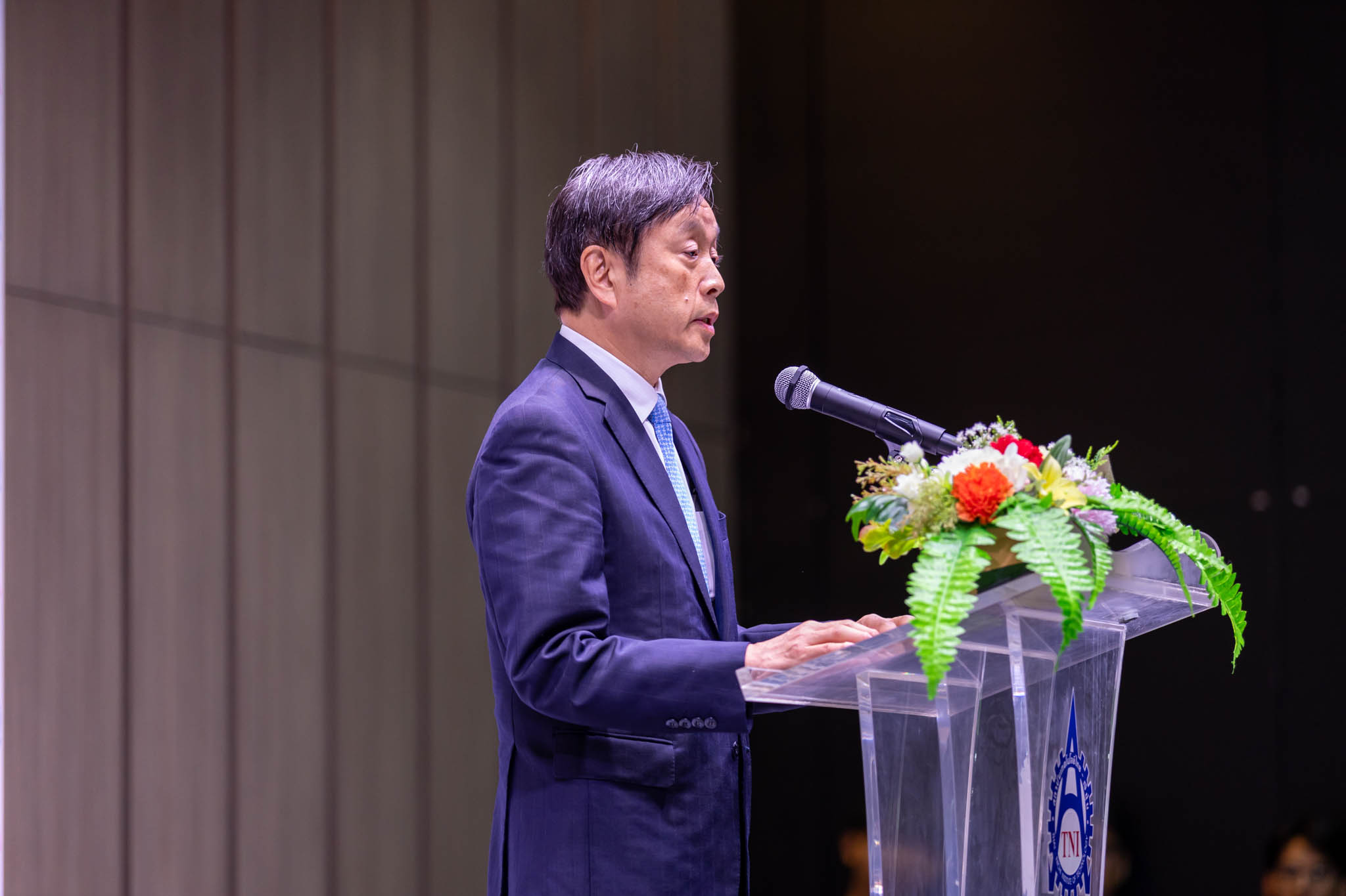 ในขณะที่สถาบันเทคโนโลยีไทย-ญี่ปุ่น มุ่งมั่นทำงานด้าน “การวิจัยเกี่ยวกับยานยนต์ไฟฟ้า” อย่างแข็งขันเพื่อบรรลุความเป็นกลางทางคาร์บอนในอนาคต และผมได้รับทราบว่าทางสถาบันยังขาดอุปกรณ์และเครื่องมือในการวิจัยที่ทันสมัย จึงจุดประกายให้โตโยต้ากลับมาคิดว่าจะช่วยสนับสนุนเรื่องนี้ได้อย่างไรบ้าง ท้ายที่สุดแล้วจึงตัดสินใจมอบอุปกรณ์และเครื่องมือเพื่อสนับสนุนการวิจัยของสถาบัน และรู้สึกยินดีที่การมอบอุปกรณ์และเครื่องมือในครั้งนี้้จะสามารถสนับสนุนการพัฒนาเยาวชนที่มีพรสวรรค์ ซึ่งจะนำพาอุตสาหกรรมยานยนต์ไปสู่ยุคใหม่ เราหวังว่านักศึกษาของสถาบันเทคโนโลยีไทย-ญี่ปุ่นจะเป็นสะพานเชื่อมระหว่างประเทศของเราเพื่อยกระดับความสัมพันธ์ระหว่างประเทศไทยและประเทศญี่ปุ่นให้แข็งแกร่งยิ่งขึ้นในอนาคต”