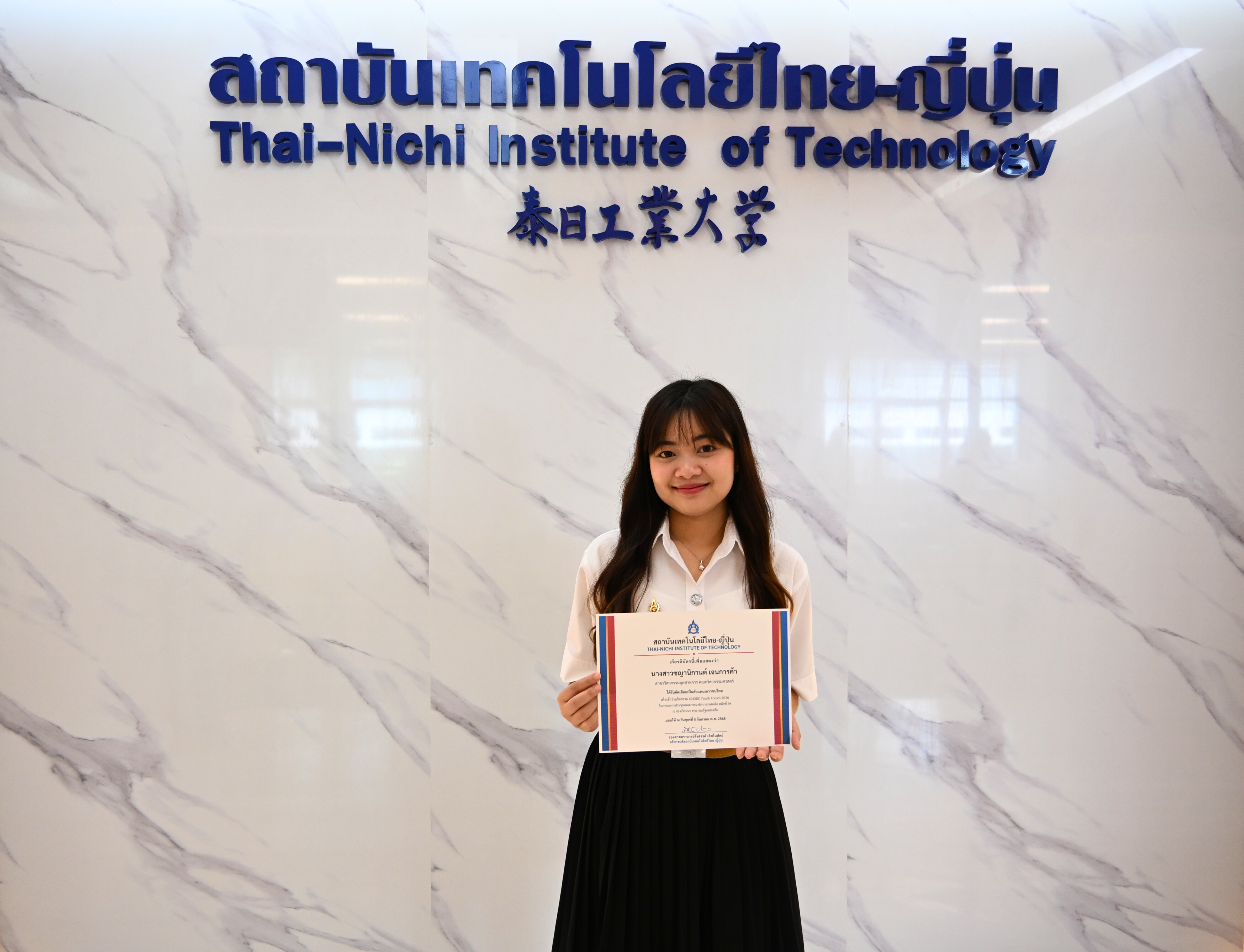 สถาบันเทคโนโลยีไทย-ญี่ปุ่น ขอแสดงความยินดีกับ นางสาวชญานิกานต์ เจนการค้า นักศึกษาชั้นปีที่ 4 สาขาวิศวกรรมอุตสาหการ (IE) คณะวิศวกรรมศาสตร์ ที่ได้รับเกียรติเป็น ตัวแทนเยาวชนไทย เข้าร่วมกิจกรรม UNODC Youth Forum 2026 ในกรอบการประชุมคณะกรรมาธิการยาเสพติด สมัยที่ 69 ณ กรุงเวียนนา สาธารณรัฐออสเตรีย การคัดเลือกจัดโดย สำนักงานคณะกรรมการป้องกันและปราบปรามยาเสพติด (ป.ป.ส.) ร่วมกับกระทรวงการต่างประเทศ ภายใต้ความร่วมมือกับ United Nations Office on Drugs and Crime (UNODC) เพื่อเปิดโอกาสให้เยาวชนไทยได้แสดงศักยภาพ และแลกเปลี่ยนมุมมองกับเยาวชนจากนานาประเทศ ภายใต้การดูแลโดย คุณพรเทพ กระโจมทอง ฝ่ายกิจการนักศึกษา