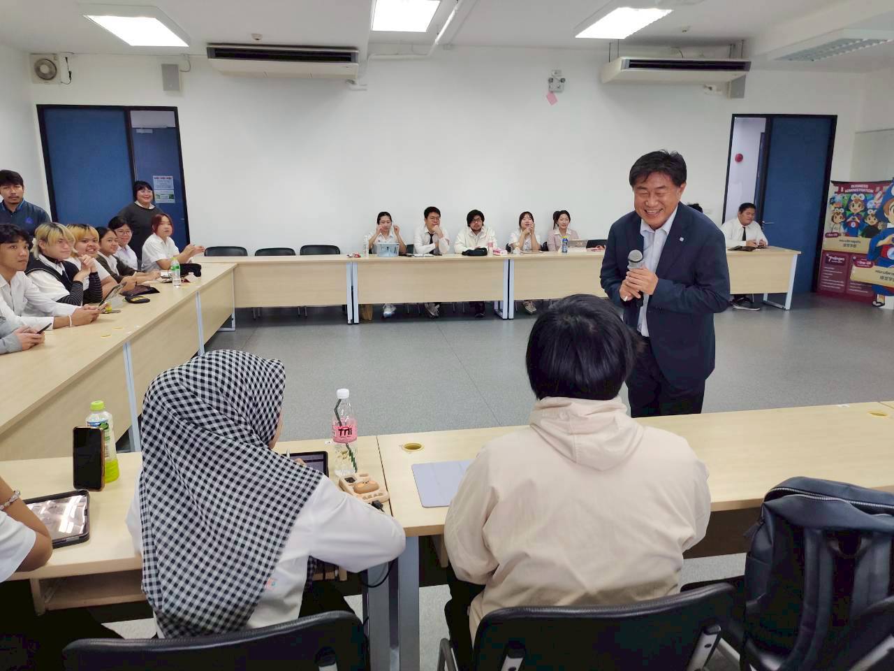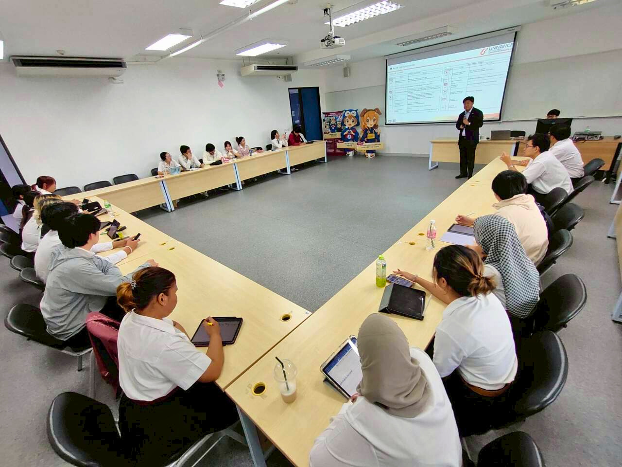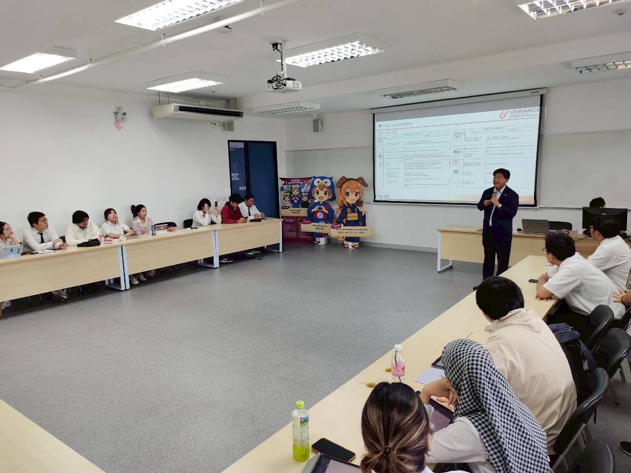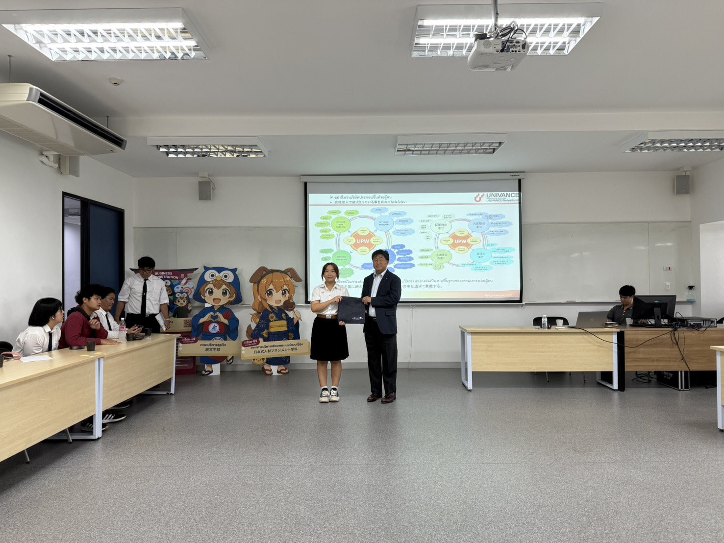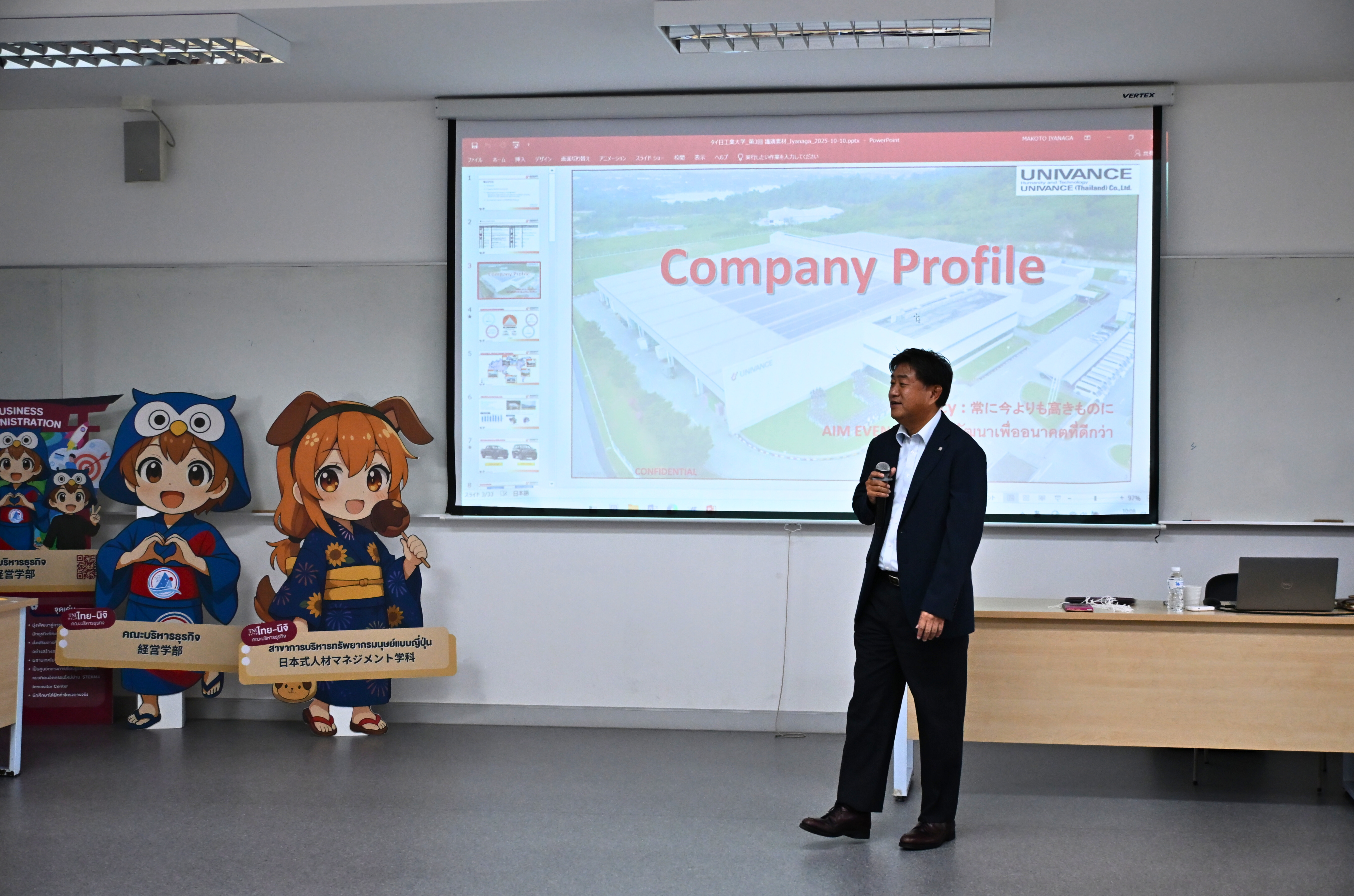 เมื่อวันที่ 10 ตุลาคม 2568 ดร.เอิบ พงบุหงอ หัวหน้าศูนย์พัฒนาทรัพยากรมนุษย์สไตล์ญี่ปุ่น (JHRD) อาจารย์จุฑามาศ ทันธิกุล ประธานหลักสูตรการจัดการทรัพยากรมนุษย์แบบญี่ปุ่น บริหารโครงการฯ ร่วมกับอาจารย์ประจำหลักสูตรฯ ให้กับนักศึกษาสาขาการจัดการทรัพยากรมนุษย์แบบญี่ปุ่น ชั้นปีที่ 2 และชั้นปีที่ 3 คณะบริหารธุรกิจ สถาบันเทคโนโลยีไทย-ญี่ปุ่น หัวข้อ “หลักการบริหารจัดการคนและงานสไตล์ญี่ปุ่น ตามกรอบแนวคิดภาวะผู้นำและวัฒนธรรมองค์กร” โดย Mr. Makoto Iyana ประธานบริษัท Univance (Thailand) Co.,Ltd. ซึ่งได้แบ่งปันแนวคิดการบริหารองค์กร โดยเน้นความร่วมมือระหว่างฝ่ายงานต่างๆ และบทบาทสำคัญของฝ่ายทรัพยากรมนุษย์ในการสรรหาและพัฒนาบุคลากร พร้อมจัดเวิร์กชอปจำลองสถานการณ์การทำงาน เพื่อให้นักศึกษาเข้าใจการบริหารองค์กรแบบญี่ปุ่นอย่างเป็นระบบ