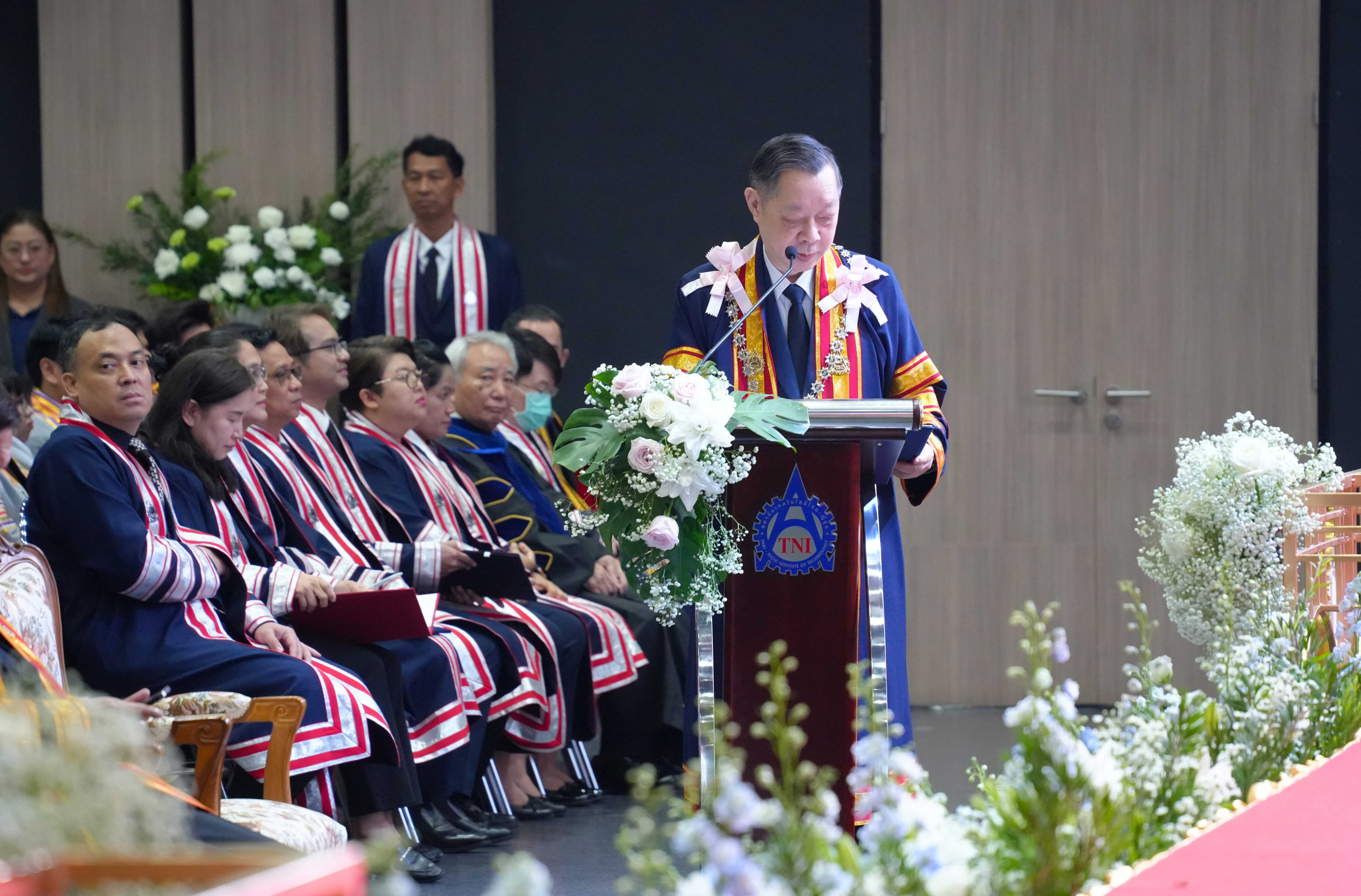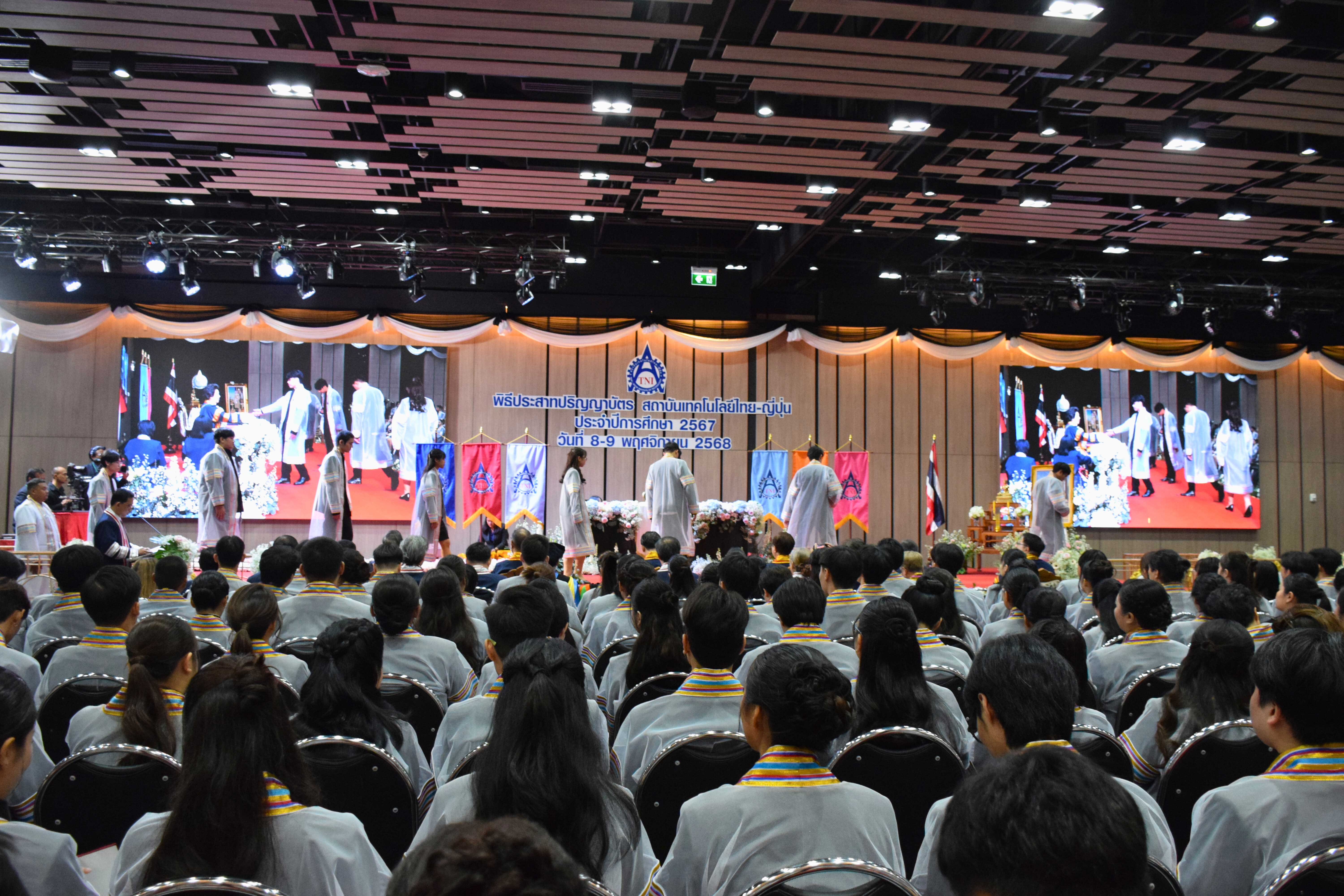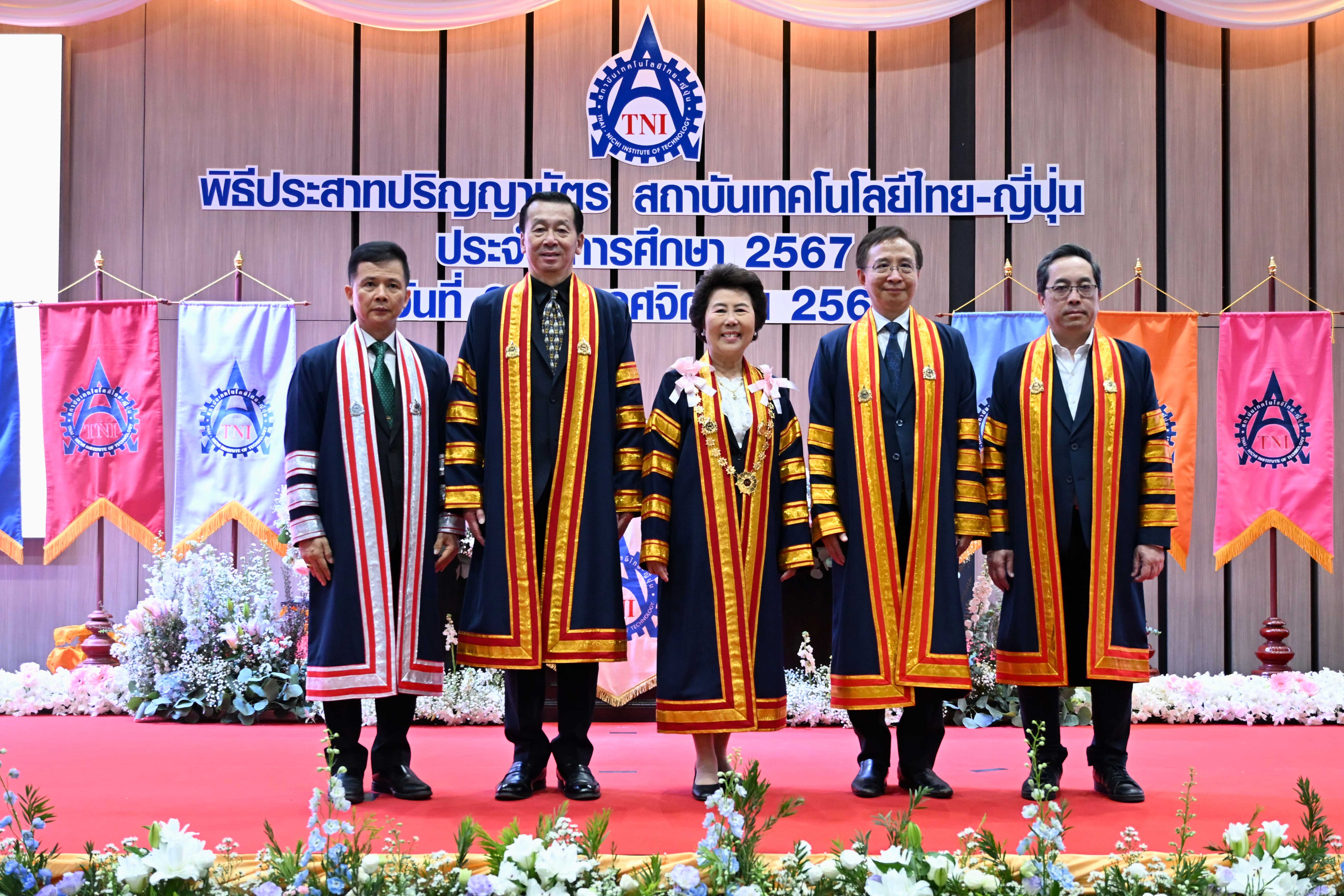 สถาบันเทคโนโลยีไทย-ญี่ปุ่น จัดพิธีประสาทปริญญาบัตรแก่ผู้สำเร็จการศึกษา ประจำปีการศึกษา 2567 เมื่อวันที่ 8-9 พฤศจิกายน 2568 ณ Convention Hall อาคาร E โดยมี รองศาสตราจารย์ปราณี จงสุจริตธรรม อุปนายกสภาสถาบันเทคโนโลยีไทย-ญี่ปุ่น และ นายกสมาคมส่งเสริมเทคโนโลยี (ไทย-ญี่ปุ่น) ให้เกียรติเป็นประธานในพิธี พร้อมกล่าวโอวาทแก่บัณฑิต โดยสรุปว่า วันนี้คือวันแห่งความภาคภูมิใจ ไม่เพียงแต่สำหรับตัวบัณฑิตเอง แต่ยังรวมถึงครอบครัว คณาจารย์ และผู้ที่มีส่วนสนับสนุนมาโดยตลอดระยะเวลาที่ศึกษาในรั้วสถาบันแห่งนี้ ซึ่งความสำเร็จดังกล่าวเกิดจากความมุ่งมั่น อดทน และความเพียรพยายามของบัณฑิต อย่างไรก็ตาม การสำเร็จการศึกษาและเข้ารับปริญญาบัตรในวันนี้ มิใช่จุดสิ้นสุดของการเรียนรู้ หากแต่เป็นก้าวแรกของการเดินทางบนเส้นทางวิชาชีพตามสาขาวิชาที่บัณฑิต ได้เรียนรู้มา ทั้งนี้ ยุคที่เทคโนโลยีและนวัตกรรมเปลี่ยนแปลงอย่างรวดเร็วและไม่หยุดอยู่เพียงสิ่งที่ได้เรียนมา บัณฑิตต้องแสวงหาความรู้ใหม่ และเปิดใจรับแนวคิดที่หลากหลาย พร้อมที่จะปรับตัวต่อการเปลี่ยนแปลงอยู่เสมอ ขอให้รักษาคุณค่าของความเป็น “บัณฑิต” แห่งสถาบันแห่งนี้ ที่มี ทั้งปัญญา ความรับผิดชอบ และจิตสำนึกต่อส่วนรวมไว้ให้มั่น ขอให้บัณฑิตทก้าวเดินต่อไปด้วยความมั่นใจในศักยภาพของตนเอง ใช้ความรู้ ความสามารถ ทักษะ และจรรยาบรรณแห่งวิชาชีพอย่างเต็มความสามารถ และเป็นกำลังสำคัญในการสร้างสรรค์ประโยชน์ ต่อสังคม ประเทศชาติ และโลกของเรา รวมทั้ง เป็นแรงบันดาลใจและเป็นแบบอย่างที่ดีให้กับคนรุ่นต่อ ๆ ไป ขอให้บัณฑิตมีหัวใจแห่งความกตัญญู รู้คุณต่อครอบครัว ครูบาอาจารย์ และองค์กรที่มอบโอกาสให้เติบโต เพราะ “ความกตัญญู” จะเป็นรากฐานที่มั่นคงของความสำเร็จและความสุขในชีวิต และจงอย่าหยุดเพียงแค่การเป็น “ผู้รับ” แต่จงเป็น “ผู้ให้” ที่พร้อมจะส่งต่อความรู้และโอกาสให้แก่ผู้อื่นในสังคมด้วย เมื่อบัณฑิตทำเช่นนั้นได้ ความสำเร็จของท่านจะไม่เพียงสร้างเกียรติแก่ตนเอง แต่ยังเป็นพลังสำคัญในการพัฒนาประเทศชาติให้ก้าวหน้ายิ่งขึ้น