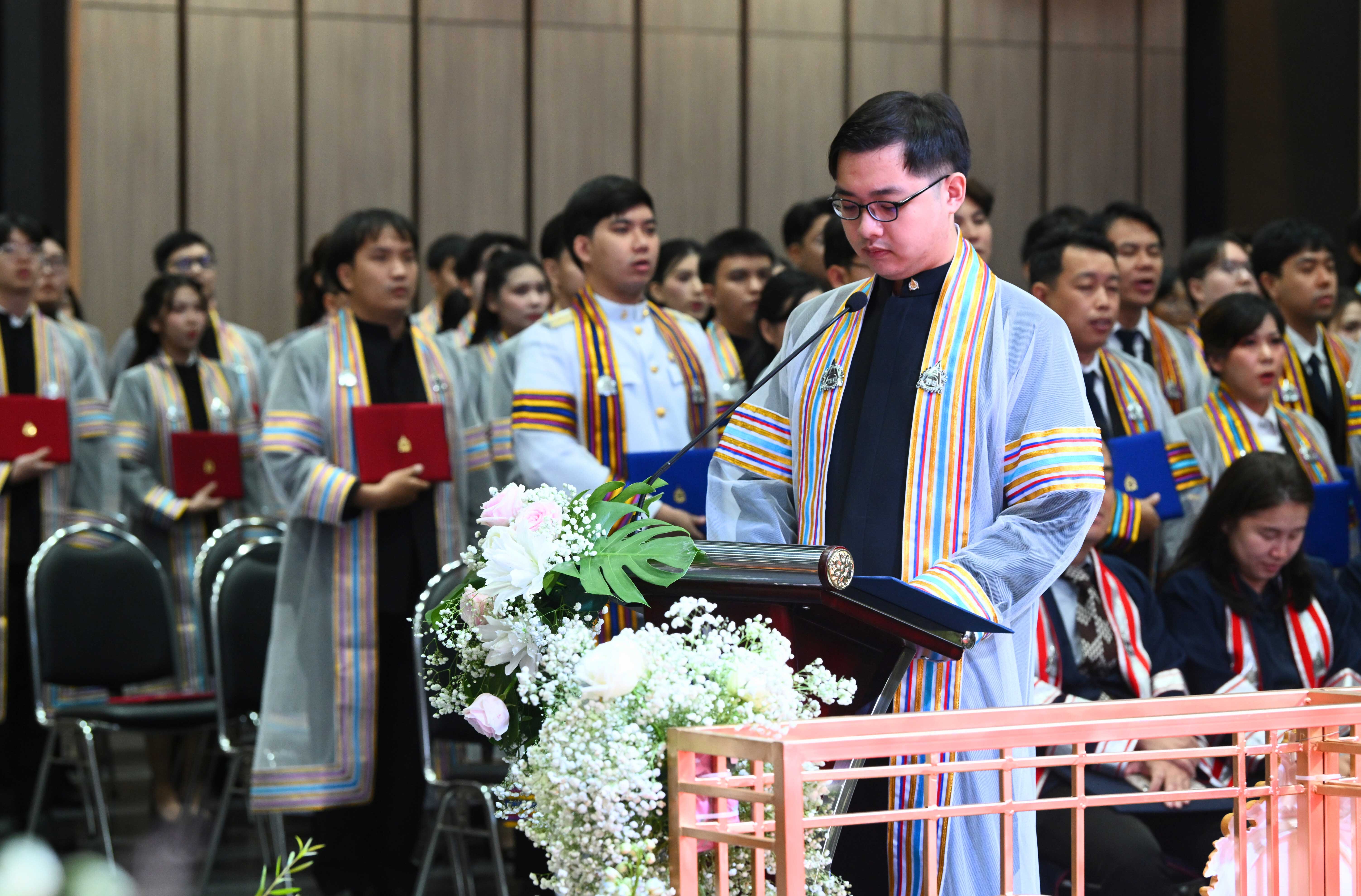 นายรวิโรจน์ เลิศในสัตย์ ผู้แทนบัณฑิตกล่าวนำคำปฎิญาณ วันที่ 8 พฤศจิกายน 2568
