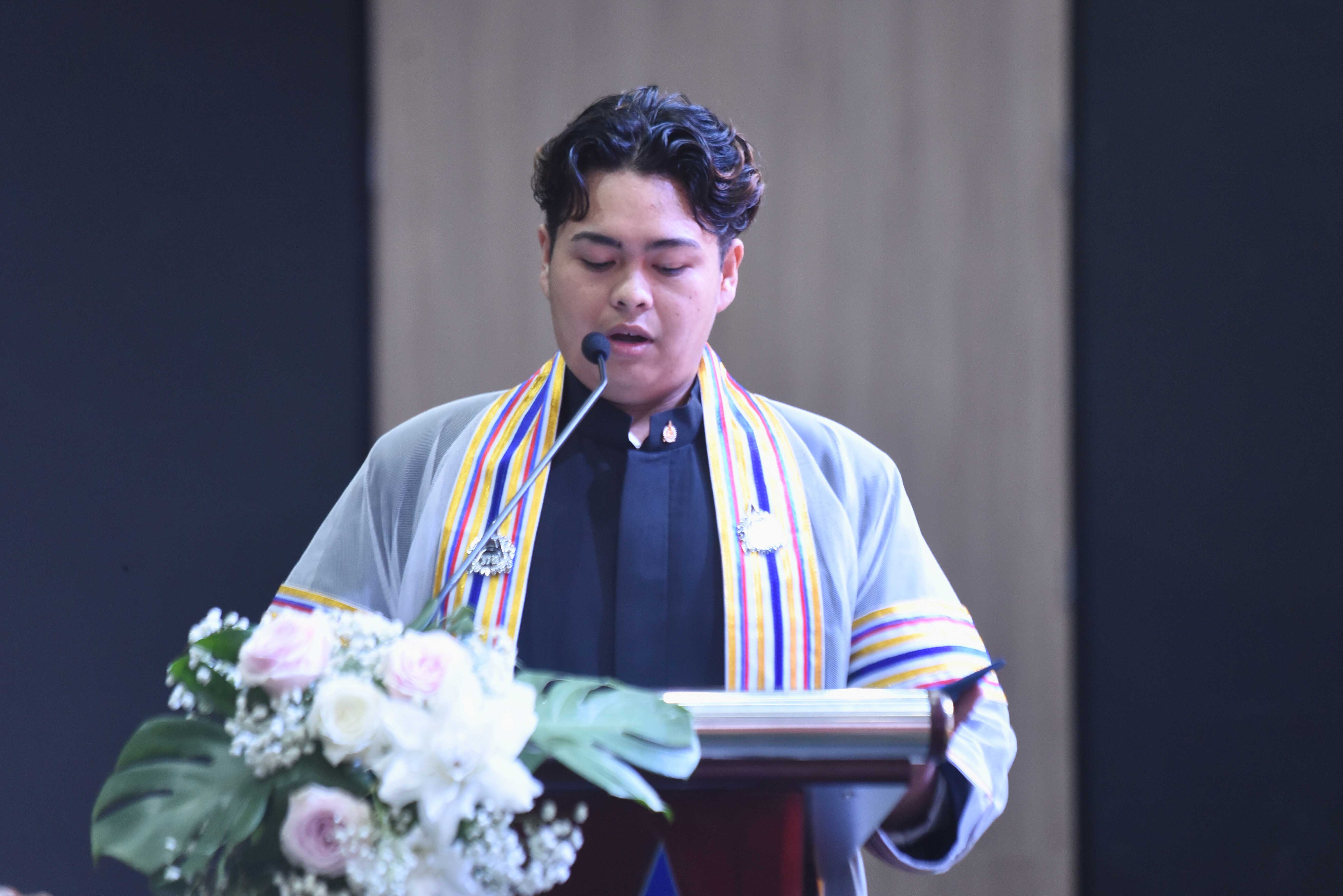 นายฟาดิ้ล หะยีเล๊าะ ผู้แทนบัณฑิตกล่าวนำคำปฎิญาณ วันที่ 9 พฤศจิกายน 2568
