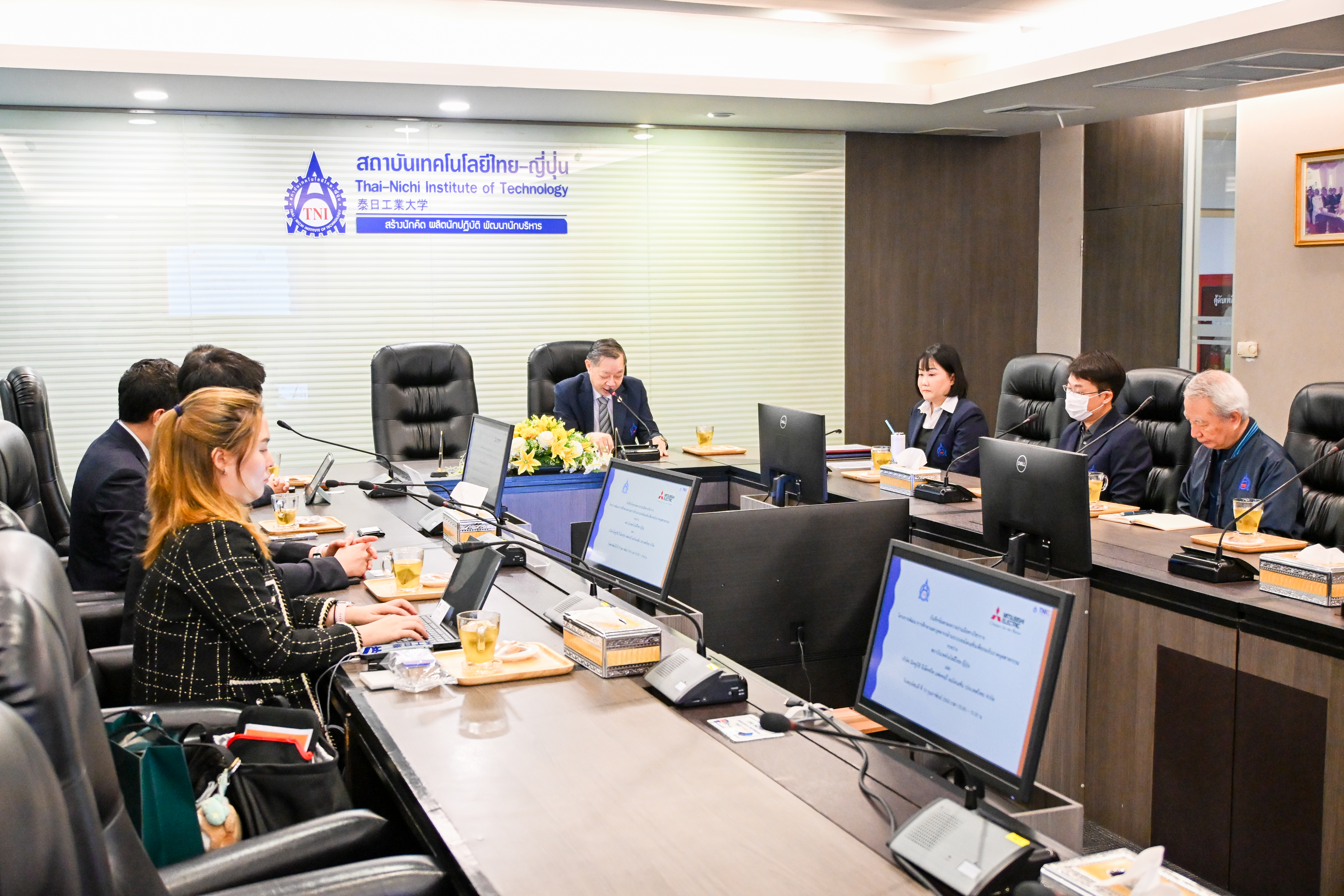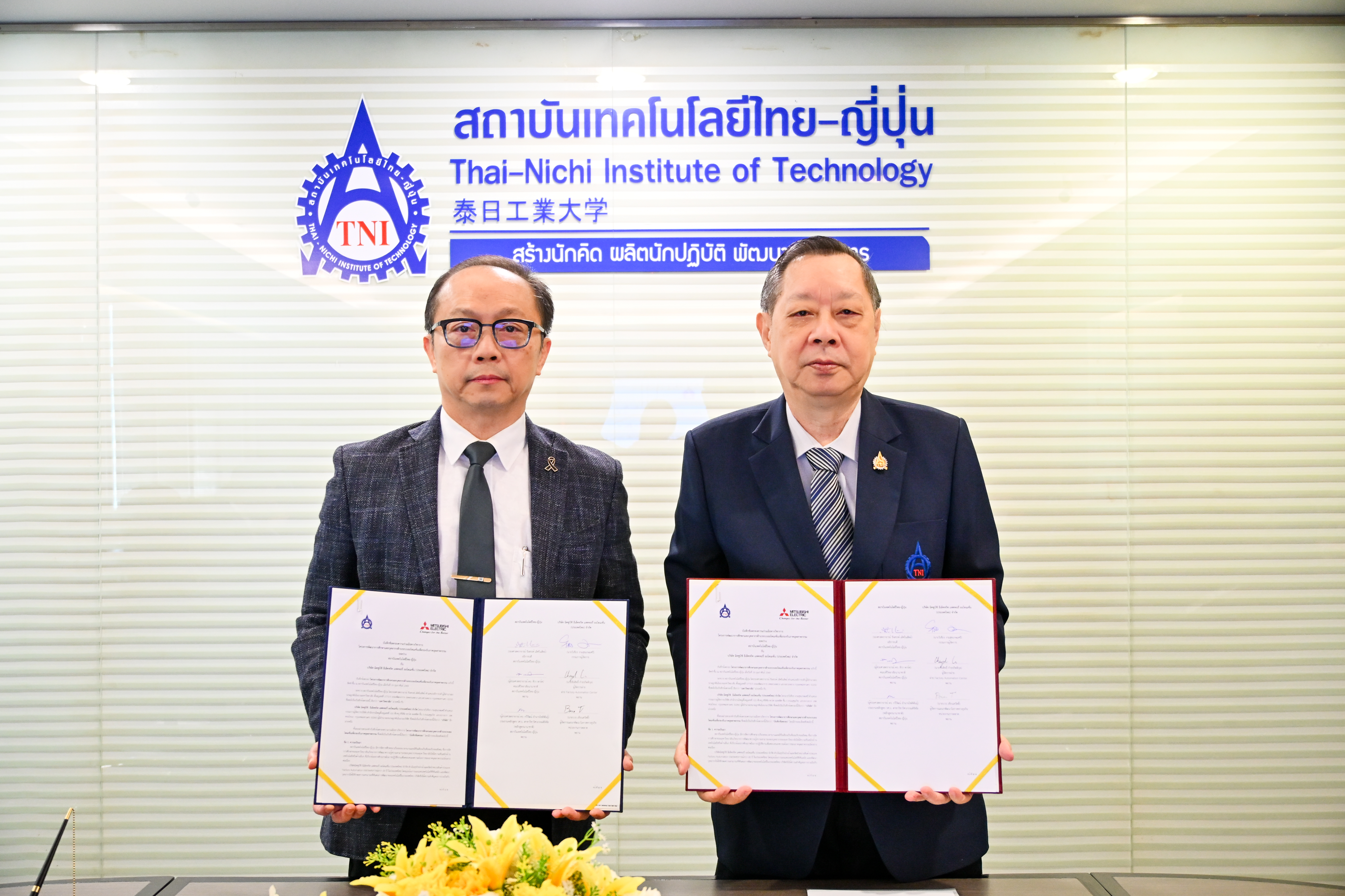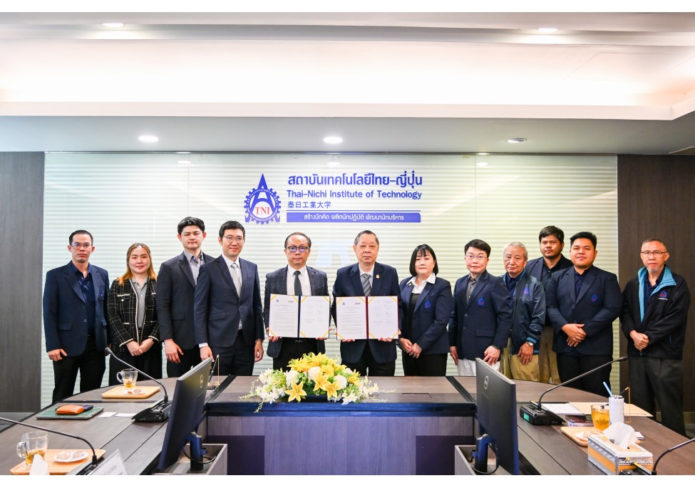 เมื่อวันที่ 19 กุมภาพันธ์ 2569 สถาบันเทคโนโลยีไทย-ญี่ปุ่น (TNI) นำโดย รศ.รังสรรค์ เลิศในสัตย์ อธิการบดี พร้อมด้วย ผศ.ดร.ทิวา พาร์ค คณบดีวิทยาลัยนานาชาติ และคณาจารย์ ได้ร่วมลงนามบันทึกข้อตกลงความร่วมมือทางวิชาการ (MOU) กับบริษัท มิตซูบิชิ อีเล็คทริค แฟคทอรี่ ออโตเมชั่น (ประเทศไทย) จำกัด นำโดย คุณวิเชียร งามสุขเกษมศรี กรรมการผู้จัดการ และคณะผู้บริหาร ความร่วมมือครั้งนี้มีเป้าหมายเพื่อพัฒนาความรู้และเสริมสร้างศักยภาพบุคลากรด้าน Factory Automation โดยบูรณาการเทคโนโลยีจากภาคอุตสาหกรรม เพื่อรองรับการเปลี่ยนแปลงของตลาดแรงงานและเพิ่มขีดความสามารถในการแข่งขันของประเทศ สอดคล้องกับนโยบาย Thailand 4.0 และประชาคมเศรษฐกิจอาเซียน (AEC)